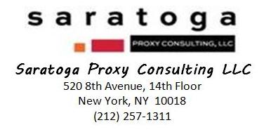 Stockholders call toll free at (888) 368-0379 Email: info@saratogaproxy.com